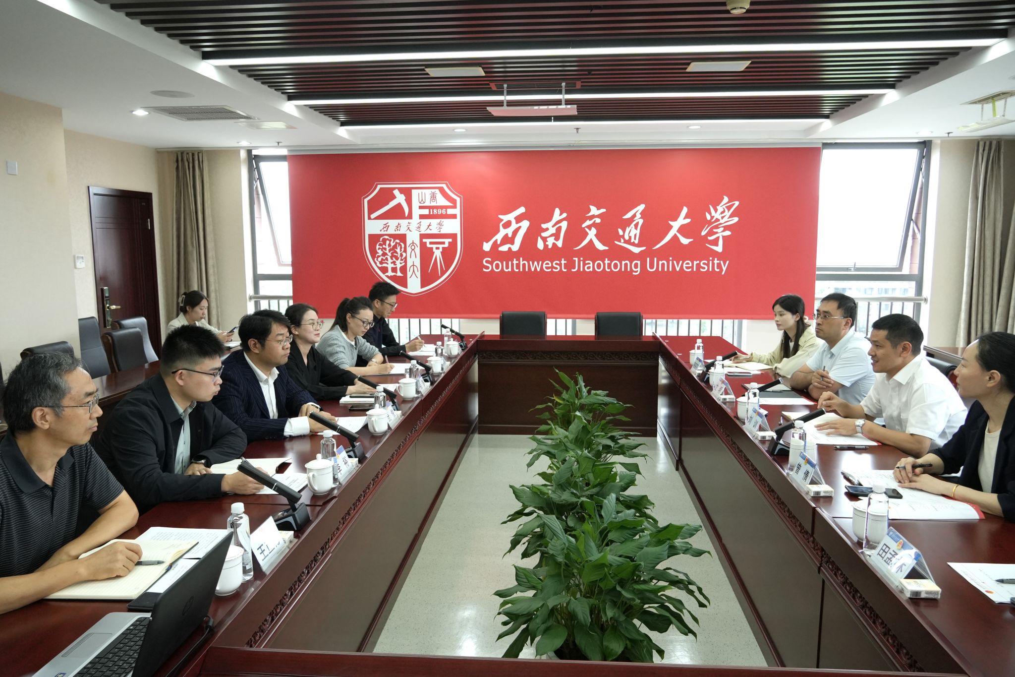 座谈会前,校党委副书记高平平会见刘训副书记一行,高平平代表学校向来宾表示热烈欢迎,他介绍了学校的办学成果和悠久历史,以及学校高度重视青年创新创业工作,服务国家战略需求,立足学校轨道交通特色加强校地合作的经验做法。盛赞湖南省服务青年创新创业政策“力度大,举措实”。他强调,学校将全力配合“智汇潇湘 才聚湖南”就业创业系列活动(成都站)筹备工作,共同谱写校地合作、共赢发展的新篇章,为国家和区域经济社会发展提供人才支持和智力支撑。