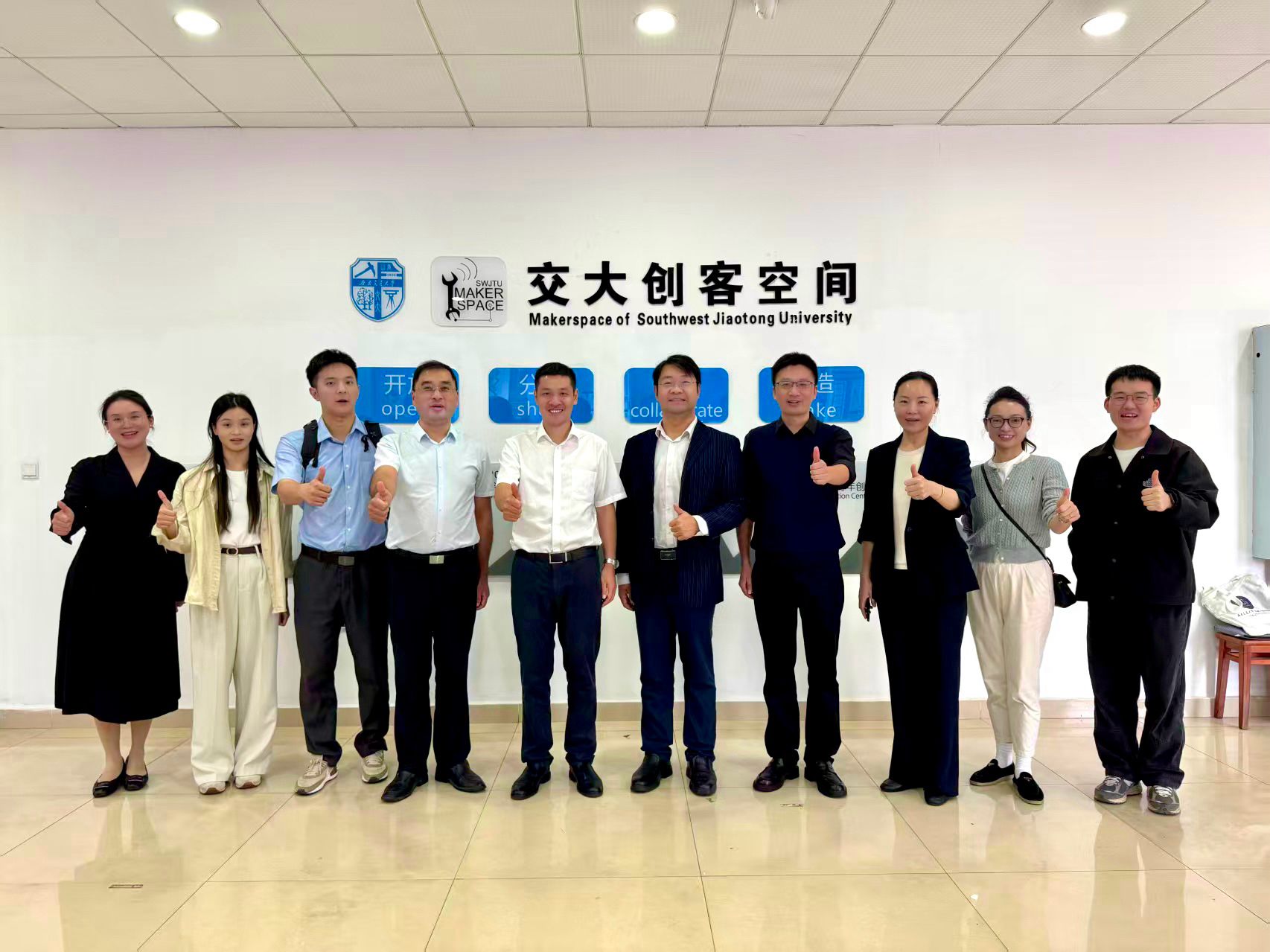 会后,与会人员集体参观了“交大创客空间”。团湖南省委学校部相关工作人员、西南交大团委、科技园、技术转移研究院、学生创新实践中心(创新创业学院)、本科生院等相关单位负责人参加了座谈走访。