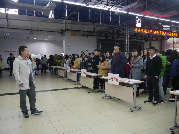 为迎接母校120周年华诞,校团委面向全校招募1000名学生志愿者服务校庆相关工作,自2015年12月启动报名工作以来,全校共有1398名同学报名,2016年3月12日上午8:30,面试工作于犀浦校区创新创业中心圆满举行。